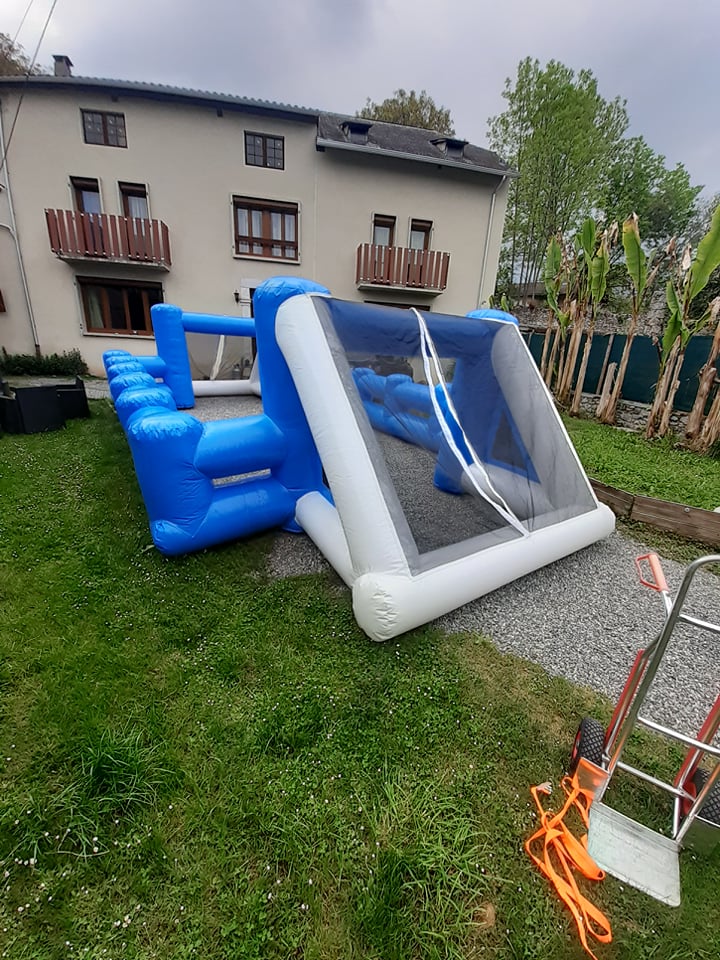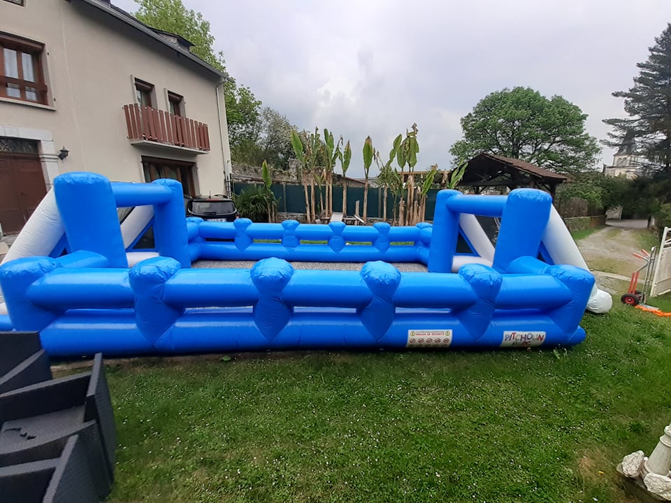 Ce Baby-Foot Humain et prévue pour 12 joueurs ( 4 barres de 3 ) fournis avec 2 ballons.