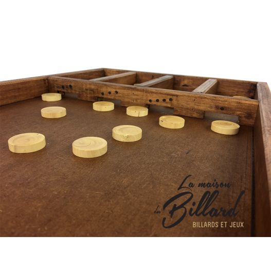 Chaque joueur dispose de 30 palets en bois qu’il doit faire glisser vers les 4 casiers du haut en les poussant ou à la pichenette. Mais il ne faut pas viser n’importe comment !