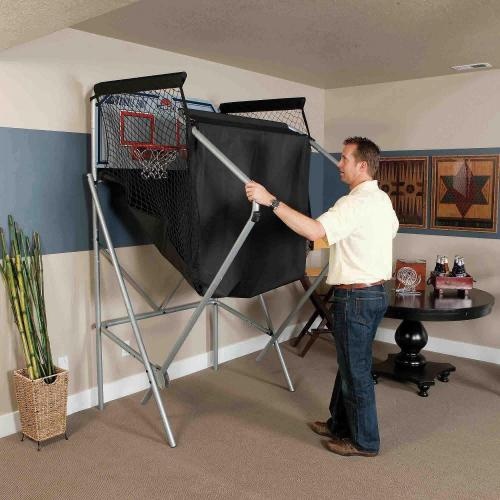 La structure est idéalement conçue pour permettre l’installation du Arcade Dual Shot dans tous les maisons, garage, salles de jeux. Pour ne pas encombrer le passage hors utilisation 10 secondes suffisent pour déverrouiller la structure et la replier, magique !